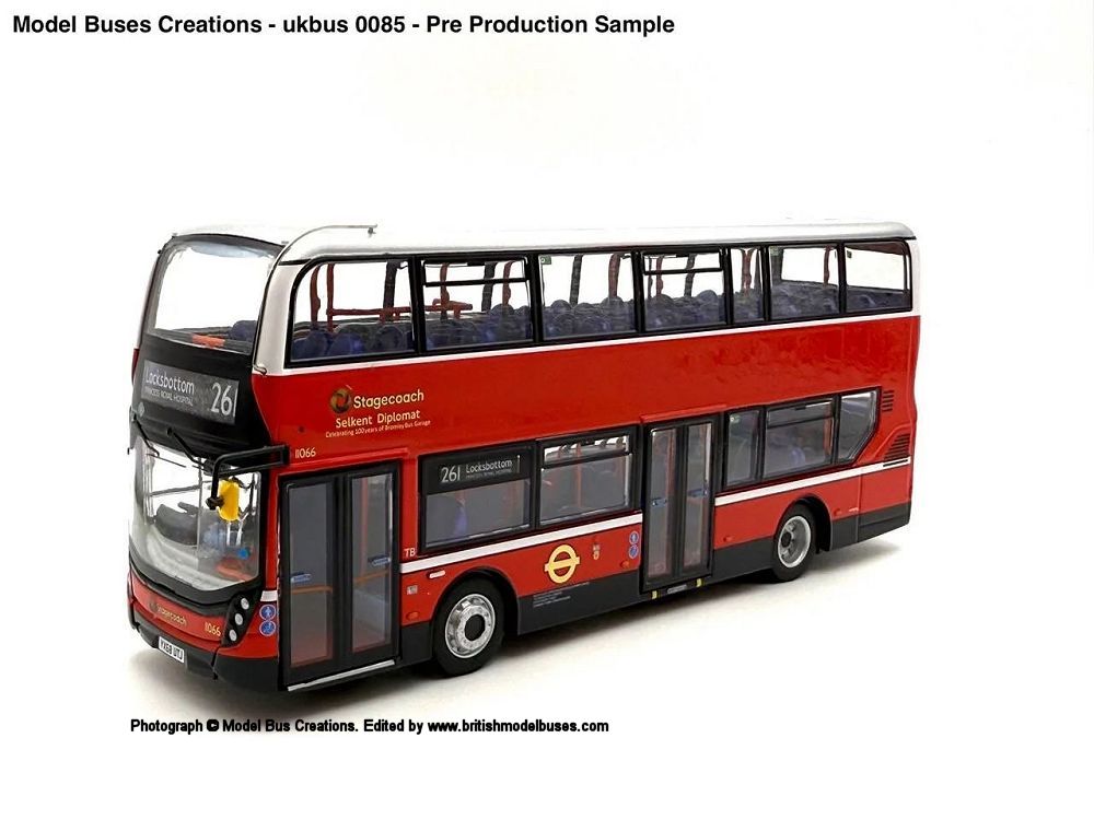 We are pleased to share with you an update on our Stagecoach London Selkent Diplomat models. Over the last 5-6 months we have been extremely busy with our other Northcord releases as well as our own productions of the recently released E200 releases and our Arriva and Superloop releases the two Diplomat models we will be realising are in production and our samples shown here are signed off and due soon We have listened to customer feedback on the routes for this model and we are pleased to say that we will replicate this model now on route 261 Locksbottom Princess Royal Hospital (UKBUS0085), we will continue to release a small run of special Stagecoach Editions with event destinations (UKBUS0086). We have also changed the number of models we will be producing and these can be seen below.
