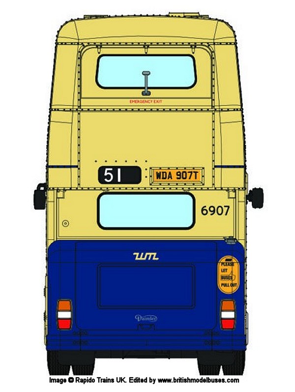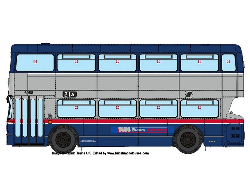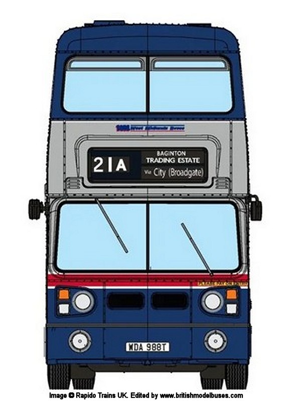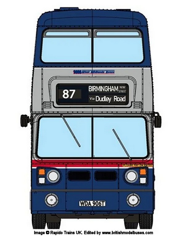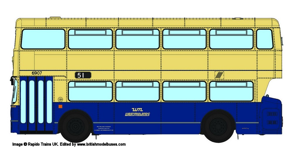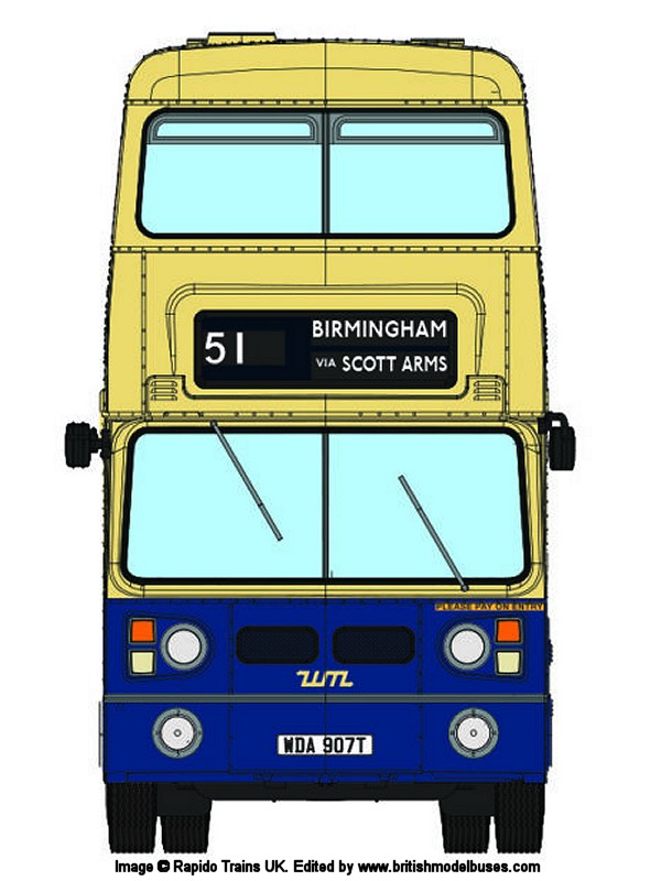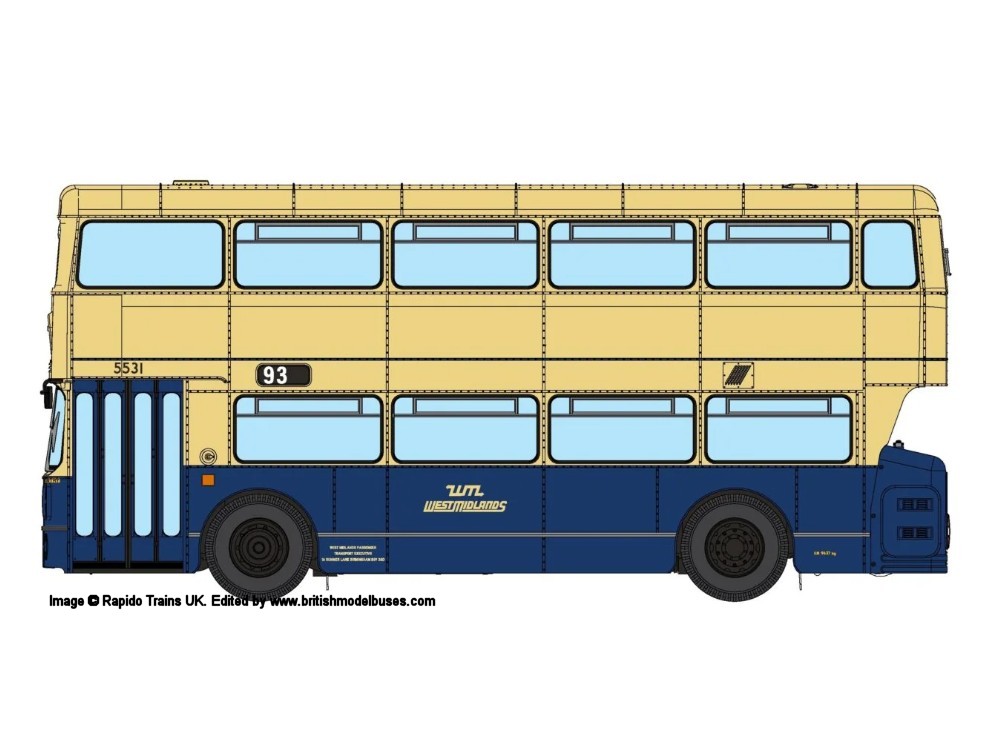| 71510 | West Midlands Passenger Transport Executive (WMPTE) - Cream with Oxford Blue lower panels, between decks band with khaki roof - Destination: Blakenall - Deluxe version | 2995 | JOJ995 | 15 | n/a | 11/19 |
