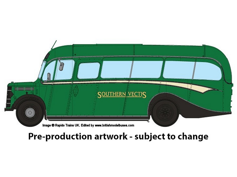 Southern Vectis (Dark green) - Destination: Ventnor - Details on model different to originally announced by Rapido. Details verified against photographs of actual models for sale on eBay 31/3/26 | 222 | GDL796 | 30 | n/a | 8/24 |