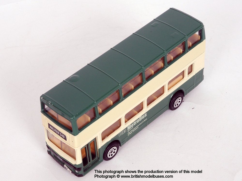 | Maidstone Boro'line | A prototype for this livery (never advertised) was auctioned some time later at a Corgi "motor show" event at the Rover Heritage Museum at Gaydon in 199x. Presumably not produced because the operator went into liquidation. In any case it would not have been authentic as Metrobuses were never operated by Boro'line |