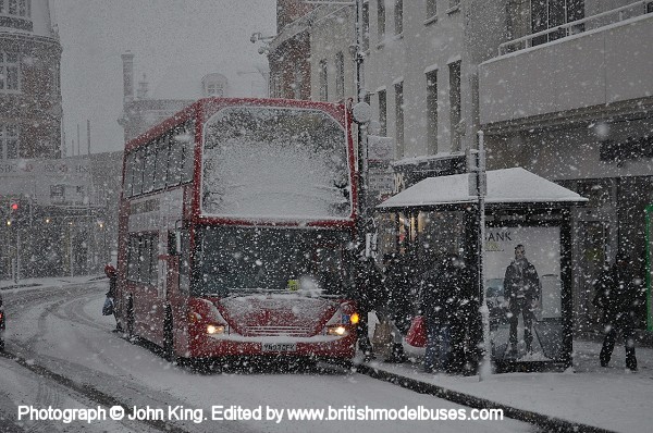 | Shown below are a selection of photographs sent to me showing buses in the severe weather conditions that hit the UK during late November/December 2010, thank you to everyone who has contributed. |