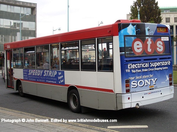 This photograph was taken in Royal Parade, Plymouth on 19th January 2006 and shows fleet number 205 (WA03BJF) - See photograph 1 above. This is the actual vehicle as represented by Creative Master Northcord Ltd model UKBUS3019. This bus was repainted at about the same time as the model was released. Photograph © Lowfloor |