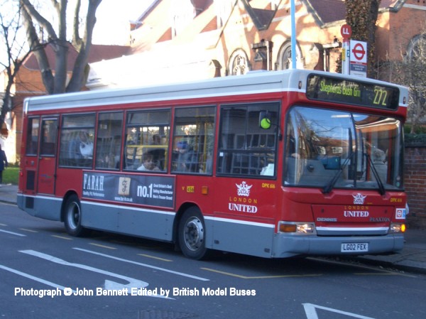 This photograph was taken at Hounslow Bus Station on 5th March 2005 and shows fleet number DP43 (T343PRH). This is the actual vehicle represented by EFE model 36601 Photograph © John Bennett |