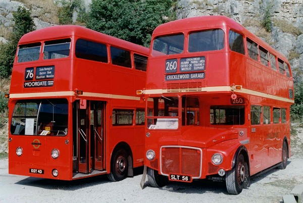 This photograph was taken at the Crich Extravaganza, August Bank Holiday 1993 and shows on the right RM1 (SLT56). On the left of the photograph is FRM1 (KGY4D). RM1 is the actual vehicle represented by Corgi Classics 1/50th scale model number CC25904 and EFE model 30201 Photograph © Bob Belcher |
