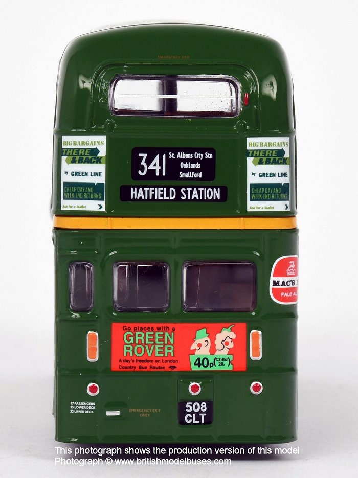 The Alexander Dennis Enviro400 MMC UKBUS6538 is a one-piece casting whose clean lines accentuate the square, gasket-mounted windows and the livery application on which all logos and lettering are clearly legible. Another main feature on the UKBUS6538 model is its tree protector at the front. The front dome on the model is significant, with curved windscreens on both upper deck and lower deck.