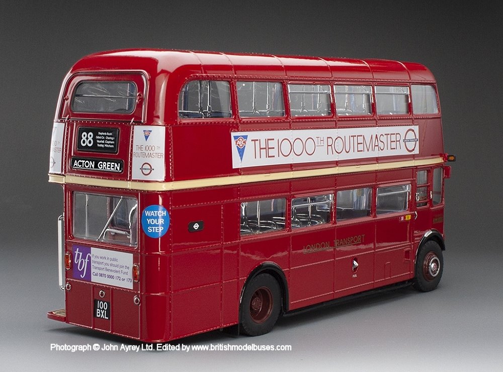 Routemaster RM - London Transport - Destination: Acton Green via Shepherds Bus, Oxford Circus, Charing Cross, Clapham and Mitcham | RM1000 | 100BXL | 88 | 1000 | 1/26 |